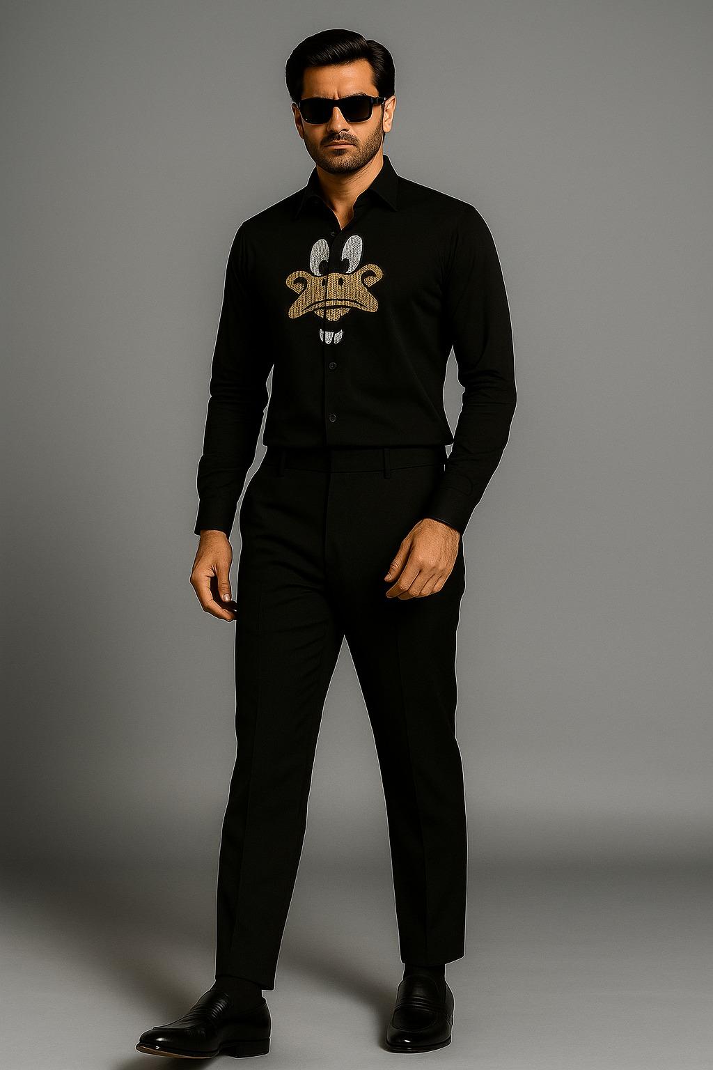 Turn heads at every party with this statement full-sleeve shirt featuring a dazzling Daffy Duck motif at the center, crafted with premium rhinestones and hotfix crystals. The sparkling embellishment adds a glamorous twist to a playful design, making it the perfect blend of fun and fashion. Designed for comfort yet made to stand out, this shirt is ideal for parties, night-outs, or whenever you want to sparkle with personality.